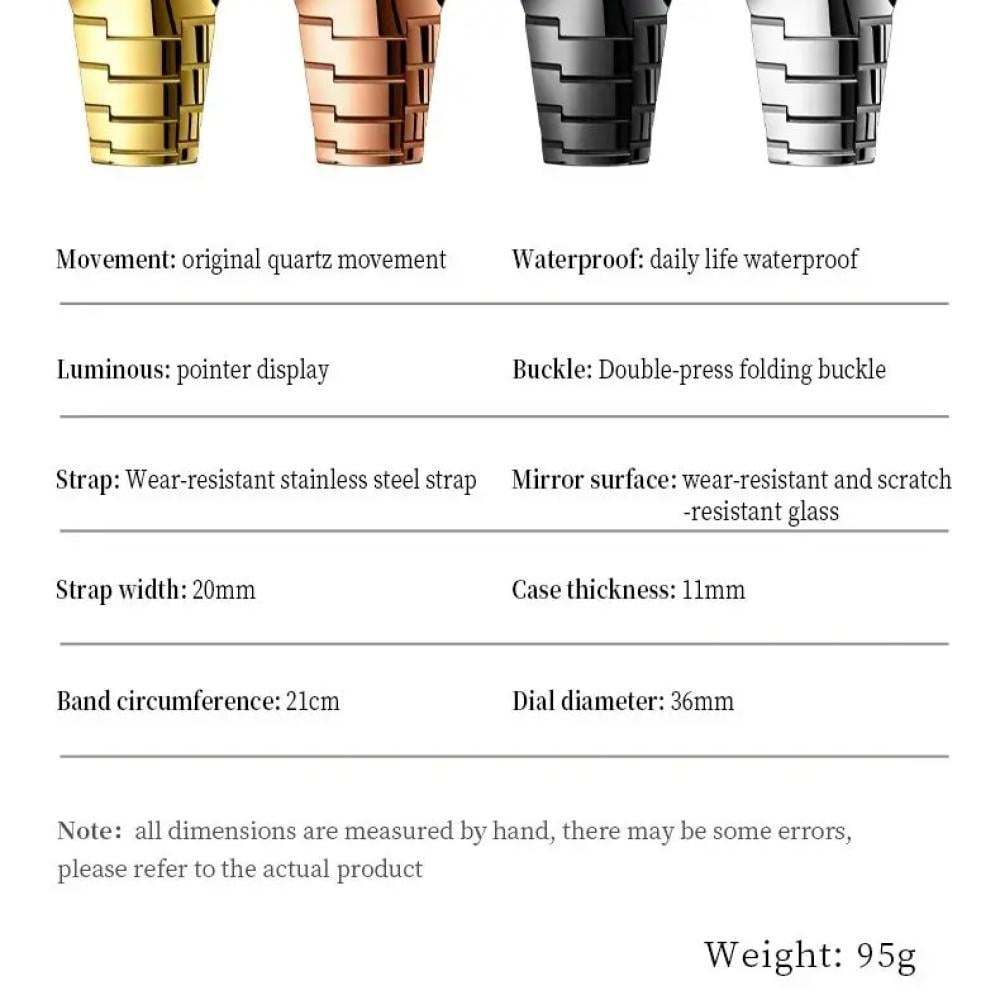 - خامات فاخرة مقاومة للصدأ والتآكل للحفاظ على رونق الساعة لفترة طويلة